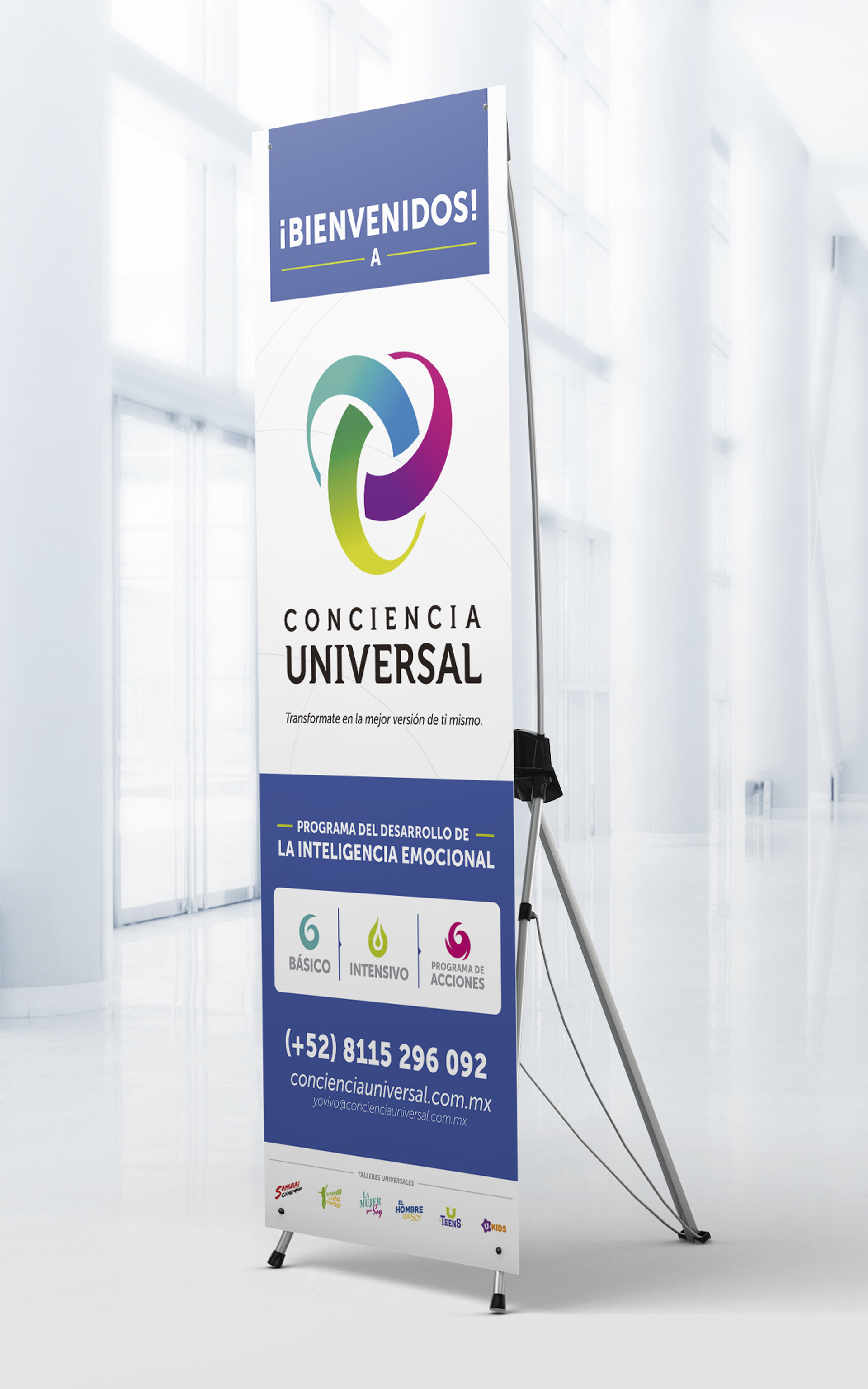 Conciencia Universal, es una Marca, que ofrece a sus clientes, cursos y talleres orientados a desarrollar la Inteligencia Emocional. En este proyecto en particular se tuvo la oportunidad de acompañar al cliente en el desarrollo de la Marca, y su debido Registro ante el IMPI, logrando su acreditación.