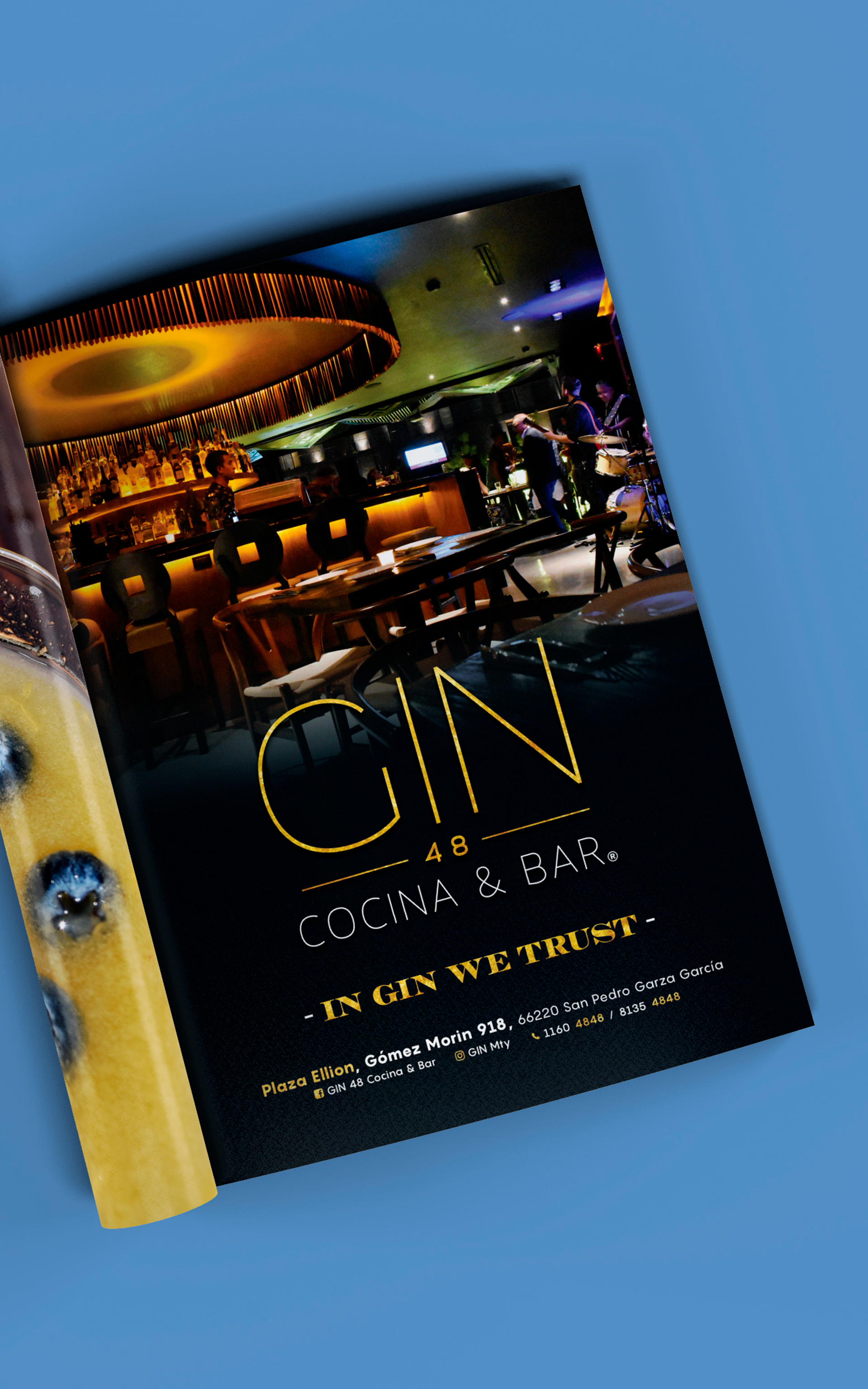 GIN 48, fue un proyecto de restaurante. Es uno de los proyecto más completo realizados por el equipo de 223-A, ya que incluyo material off-line como on-line, para la comunicación de la Marca